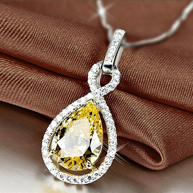 Huitan Brilliant Yellow Color Women Necklace Wedding Ceremony Party Accessories Shiny Crystal CZ Luxury Female Pendant Necklaces – Sumsfashion
